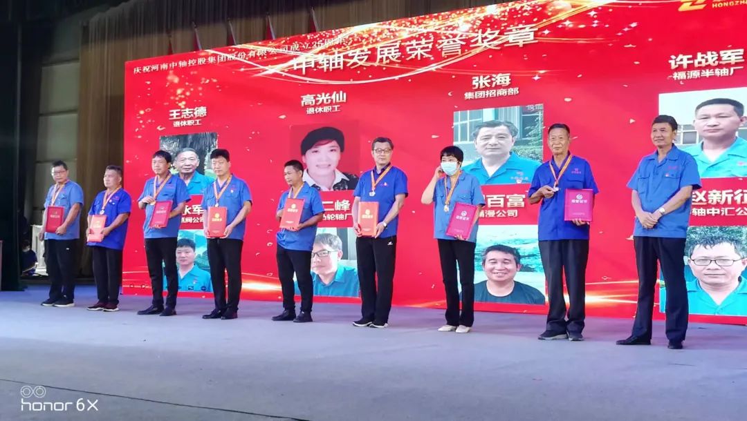 會議上隆重舉行了向“中軸發(fā)展榮譽獎章”獲得者頒獎儀式。馬海洋董事長為王志德、高光仙、張海、郭二峰、李永軍、許占軍、劉百富、趙新征等八名獲獎人員頒發(fā)了獎章和榮譽證書。