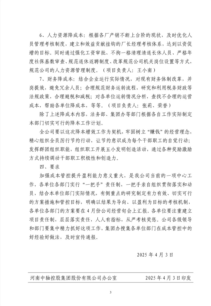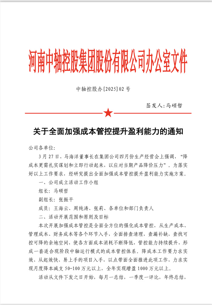中軸控股辦【2025】02號(hào)全面實(shí)施降成本工作方案