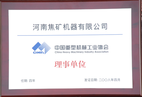 2009年4月18日至19日,中國重型機(jī)械工業(yè)協(xié)會(huì)五屆二次會(huì)員代表會(huì)議暨理事會(huì)議在北京召開。 根據(jù)協(xié)會(huì)章程,并經(jīng)五屆三次常務(wù)理事會(huì)議通過,增補(bǔ)河南焦礦機(jī)器有限公司為中國重型機(jī)械工業(yè)協(xié)會(huì)第五屆理事會(huì)理事單位,增補(bǔ)公司董事長(zhǎng)侯向保為第五屆理事會(huì)理事。 經(jīng)中國重型機(jī)械工業(yè)協(xié)會(huì)秘書處推薦,并經(jīng)五屆三次常務(wù)理事會(huì)審定,公司董事長(zhǎng)侯向保被授予“中國重型機(jī)械工業(yè)協(xié)會(huì)先進(jìn)工作者”稱號(hào)。