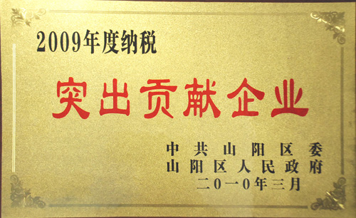 3月10日,山陽區(qū)召開經(jīng)濟工作會議暨年度表彰會。山陽區(qū)委、區(qū)政府授予我公司“科技創(chuàng)新獎”和“納稅突出貢獻企業(yè)”兩項殊榮。2009年,我公司實現(xiàn)稅金1918.3萬元,在山陽區(qū)名列前茅。