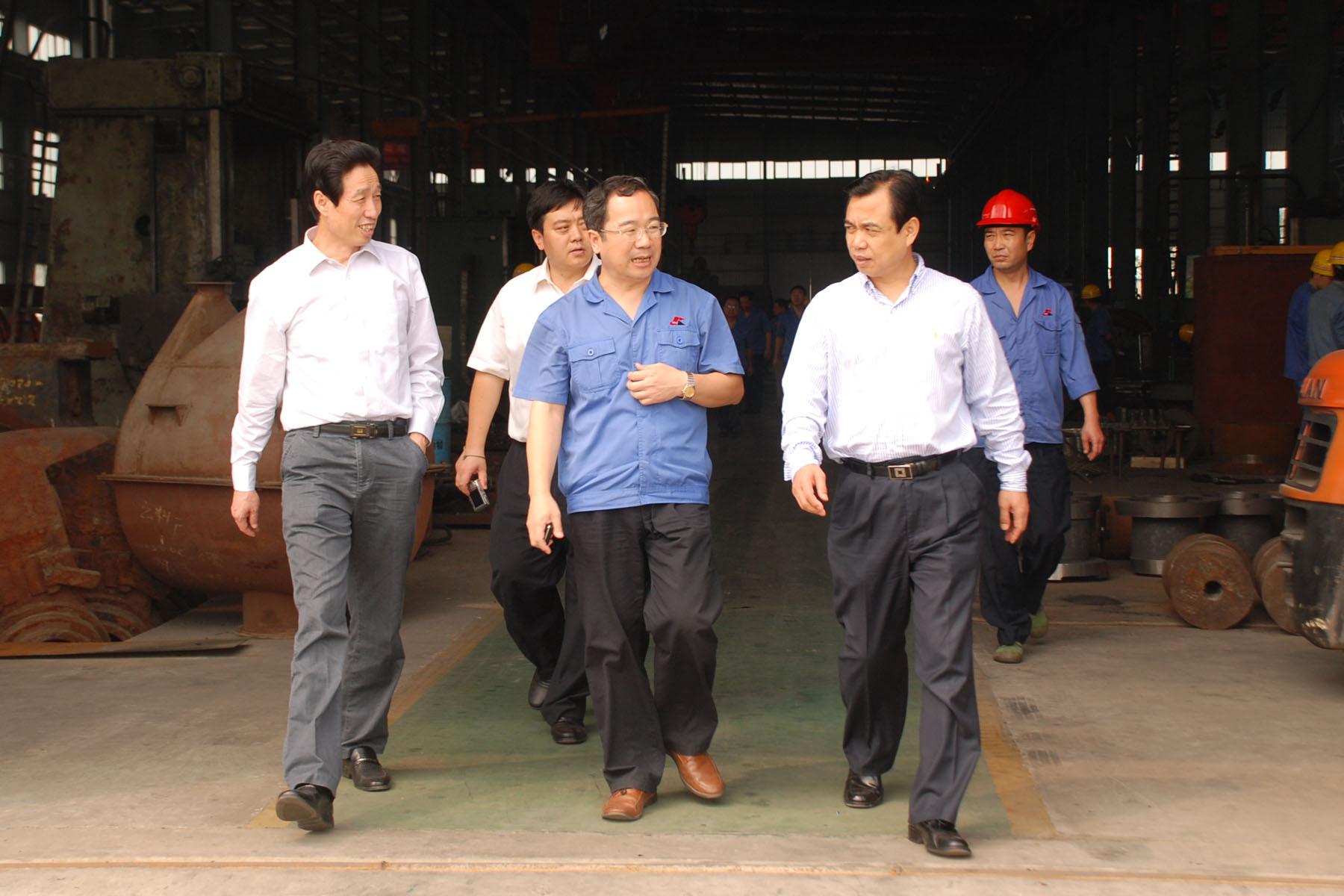 任沁新一行先后到重機(jī)廠、金結(jié)廠以及在新廠區(qū)生產(chǎn)作業(yè)的中凱礦機(jī)公司、華凱鑄鍛鑄鐵廠現(xiàn)場(chǎng)實(shí)地考察。來到一個(gè)同行業(yè)的生產(chǎn)現(xiàn)場(chǎng),他倍感親切,不時(shí)地在不同生產(chǎn)設(shè)備及半成品、產(chǎn)成品前和公司董事長(zhǎng)侯向保親切交談。